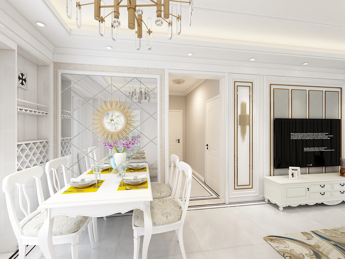 糅合了簡約主義的利落、爽潔和傳統歐陸風格的精致、華麗,淺淡的藍灰色加以玫瑰金裝飾線條,整體溫馨、時尚